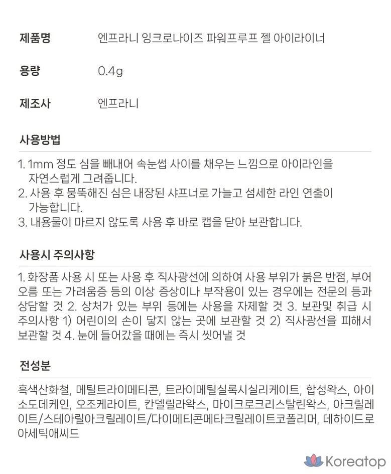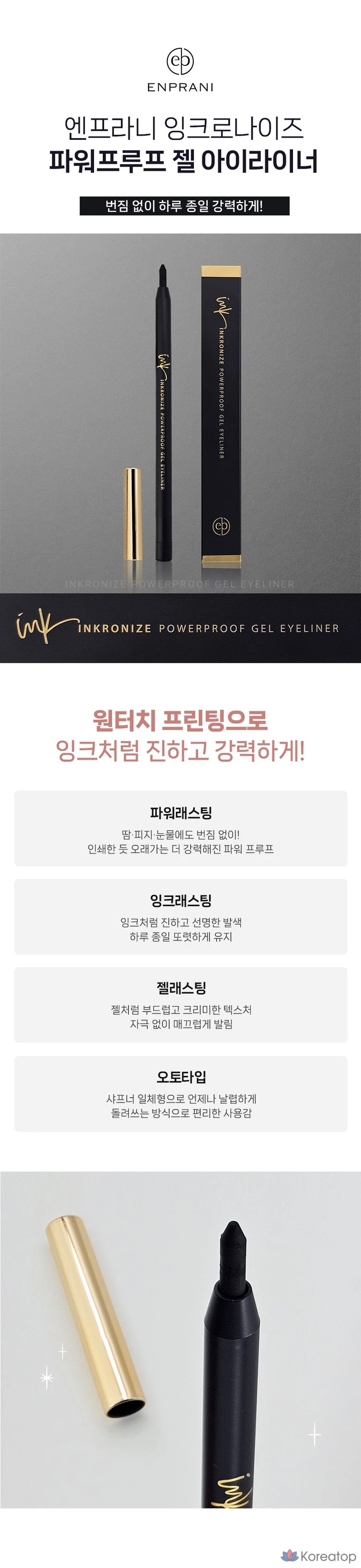 Водостойкий гелевый карандаш для глаз Enprani Inkronize, цвет Coco Black, 1 шт., 01. Чернила черного цвета
