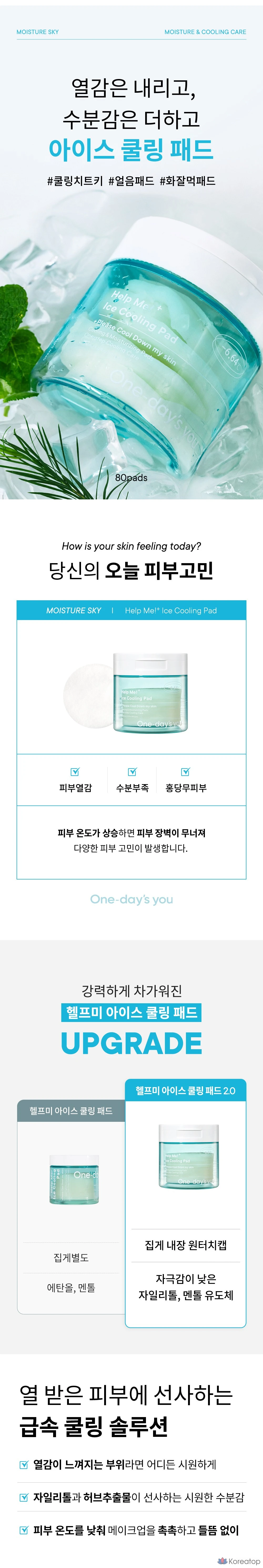 Мгновенное спасение для разгоряченной и уставшей кожи! Эти охлаждающие пэды от One-day's you — настоящий глоток ледяной воды в жаркий день или после долгой дороги. Тончайшие диски обильно пропитаны эссенцией, которая моментально снижает температуру кожи, снимает покраснения и успокаивает раздражения. Просто приложите пэд на 10-20 минут на проблемную зону или протрите им лицо, чтобы ощутить волну свежести и глубокого увлажнения. Кожа становится заметно спокойнее, уходит дискомфорт, а поры сужаются. Идеальное средство для экстренного SOS-ухода и подготовки кожи к макияжу.