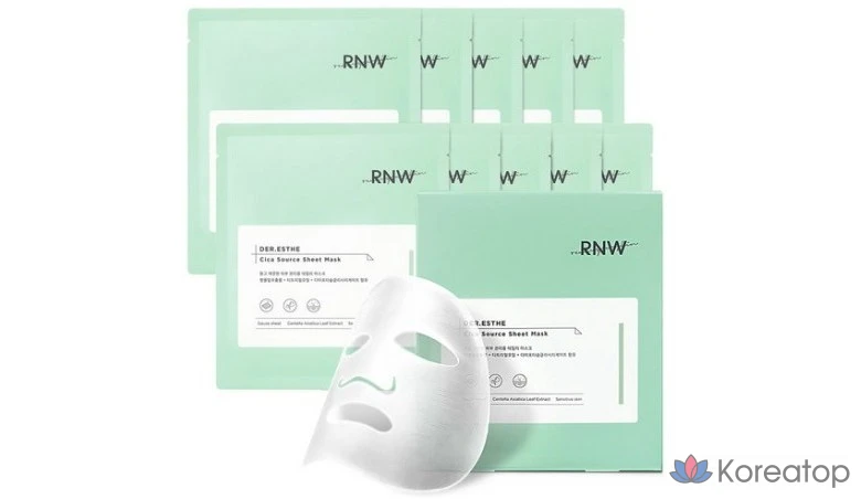 Набор успокаивающих масок RNW Cica Source, 10 штук, 1 упаковка.