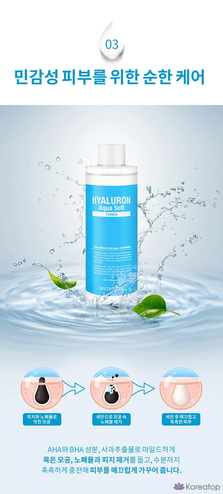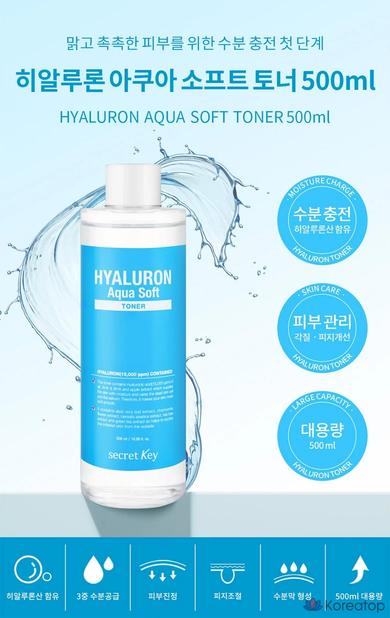 Тоник Secret Key Hyaluronic Aqua Soft, 500 мл, 1 шт.