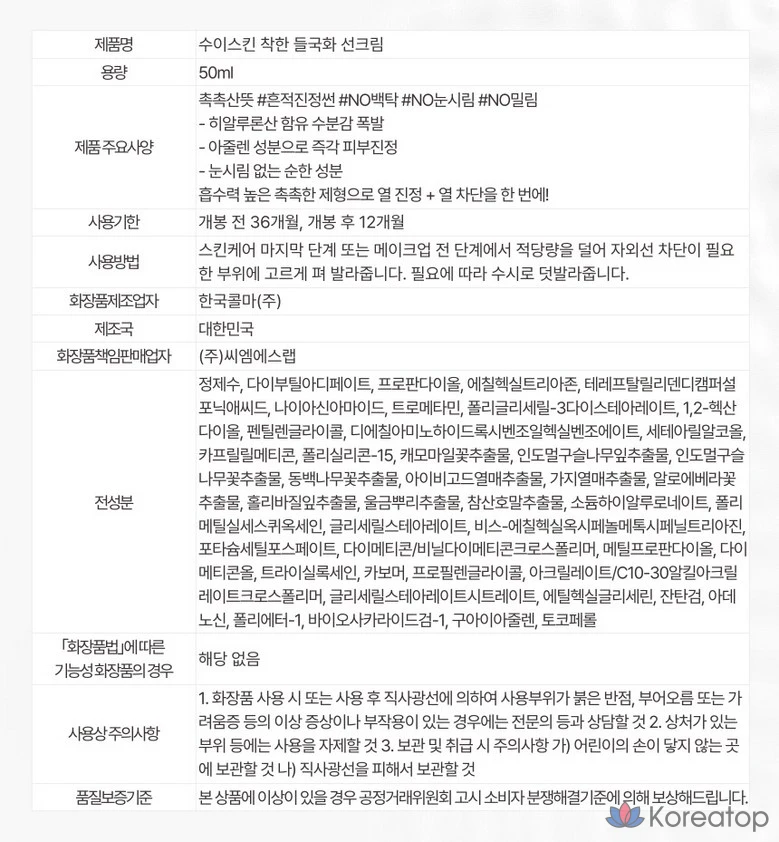Солнцезащитный крем Suiskin Good Wild Chrysanthemum SPF50+ PA++++, 50 мл, 1 шт.